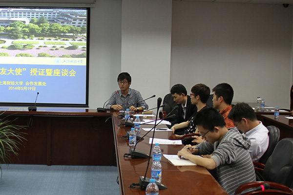 2014届毕业生离校前夕,我校合作发展处分别于5月19日、6月13日在行政楼会议室分两场举行了2014届上海财经大学毕业生“热心校友大使”活动,活动主要以座谈会、互动交流、授证仪式开展。来自我校各个院所的本科和研究生毕业班级的热心校友联络人同学近80名参加了本次活动。我校合作发展处处长邓伟、副处长张彦波出席相关活动仪式。