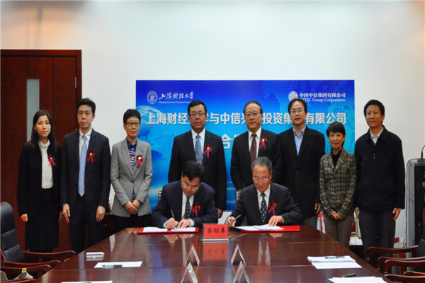 11月8日下午,在欢庆上财97周年校庆之际,也是上海财经大学校董会成立2周年纪念日的喜庆日子,上海财经大学与中信兴业投资集团有限公司校企合作签约仪式在我校国定路校区红瓦楼一楼会议室举行。
