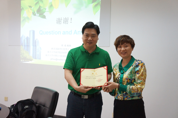 上海财经大学学术期刊编辑部主任陆蓉教授向周建教授颁发了《外国经济与管理》栏目主持人聘书。编辑部希望栏目主持人帮助期刊建立专家导向的学者精英团队,积极举办专业学术会议并参与组稿,构筑过硬的审稿人队伍,构筑牢固的作者队伍。