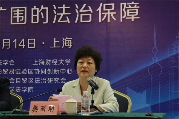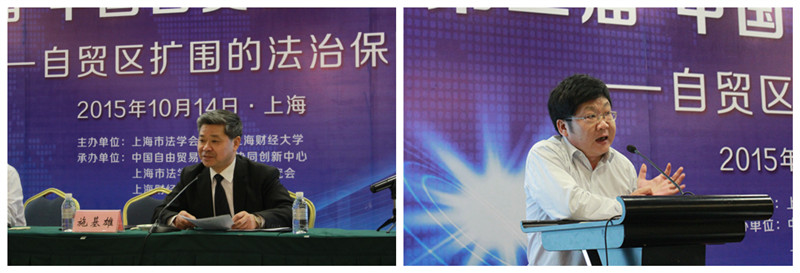 2015年10月14日下午,由上海市法学会、上海财经大学主办,中国自由贸易试验区协同创新中心、上海市法学会自贸区法治研究会和上海财经大学法学院承办的第二届中国自贸区法治论坛在上海建国宾馆召开。本次论坛以“自贸区扩围的法治保障”为主题,来自中国法学会、上海市法学会、上海市人民政府法制办、上海市商务委员会、上海市人民检察院、上海市第一中级人民法院、上海国际仲裁中心、福建省委党校、福建省人大、津粤闽豫等地法学会等单位以及上海交通大学、厦门大学、对外经济贸易大学、华东政法大学、上海大学、上海师范大学、上海政法学院、上海财经大学等高校的百余位专家学者代表围绕“自贸区扩围的制度创新与保障”、“对接国际高标准的投资贸易规则”等专题进行了集中讨论。