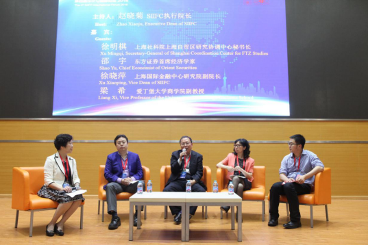 主旨演讲环节结束后即进入高端圆桌论坛环节,由上海国际金融中心执行院长赵晓菊教授主持。上海社科院上海自贸区研究协调中心秘书长徐明棋教授、东方证券首席经济学家邵宇先生、上海国际金融中心研究院副院长徐晓萍教授、爱丁堡大学商学院梁希副教授分别就上海国际金融中心功能提升与科创中心建设等重大国家战略问题发表观点并讨论,同时与参会嘉宾及媒体记者展开互动讨论。