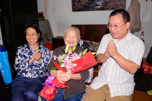 秋风送爽,金桂飘香,上海财经大学继续教育学院退休教师储宝敏女士迎来了百岁生日。9月25日下午,继续教育学院、学校离退休处以“庆百岁生日,迎百年校庆”为主题,按照上海地方习俗,在百岁老人储宝敏女士位于静安区的家中举行了简朴而又隆重的“百岁生日”庆祝活动。黄颖副校长代表学校出席活动,对百岁老人表达学校的关心和祝福。离退休处金申荣书记出席活动并详细询问了老人的身体状况和生活情况。出席活动的还有继续教育学院党政班子成员、工会委员会委员以及离退休老同志代表。百岁老人储宝敏女士表示,感谢学校对老人的关心和照顾,祝愿学校更上新台阶,祝愿学校全体教师身体健康、万事如意。