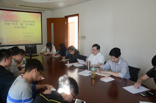 5月12日下午,会计学院党委在学院322会议室举行教工、学生党支部开展“两学一做”学习教育交流会,学院党委书记周国良主持会议,学院教工、学生(本、硕、博)党支部书记以及学生工作辅导员等参加交流会。