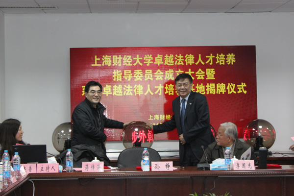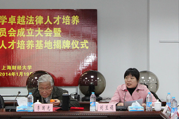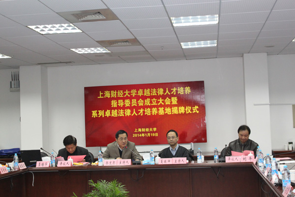 上海财经大学卓越法律人才培养指导委员会成立大会暨系列卓越法律人才培养基地揭牌仪式于2014年1月19日在上海财经大学国定路校区行政楼三楼会议室举行。会上,法学院党总支书记周杰普副教授宣布上海财经大学卓越法律人才培养指导委员会名单。上海财经大学副校长孙铮教授、上海财经大学副校长刘兰娟教授、上海财经大学副校长蒋传海教授向上海财经大学卓越法律人才培养指导委员会顾问、主任委员、副主任委员、委员等颁发聘书。