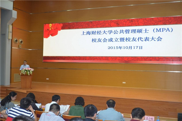 精耕十年,校友会应时而出;金秋十月,MPA满载收获。下午3时,在庄严的《中华人民共和国国歌》声中,大会正式开始。会议由公共经济与管理学院党总支书记沈晖主持。MPA教育中心主任曾纪茂向大会汇报了校友会筹备工作情况,合作发展处副处长张彦波宣读了校友总会同意成立MPA校友会的批复。副校长姚玲珍与合作发展处处长陈红梅共同为MPA校友会成立揭牌。上海财经大学浙江校友会筹备组负责人杨景欣以老校友身份致辞祝贺,教师代表、公共政策与治理研究院院长胡怡建教授也更进一步表示期待与MPA校友、MPA校友会在应用研究时开展合作。大会举手表决通过了《MPA校友会章程》,产生了第一届理事会,卞佳颖等78位校友当选为MPA校友会第一届理事会理事。姚玲珍副校长深情回顾了MPA项目创立以来的历史,肯定了MPA项目发展的成绩,对MPA校友会的运作以及MPA项目的持续进步提出了高规格的要求。