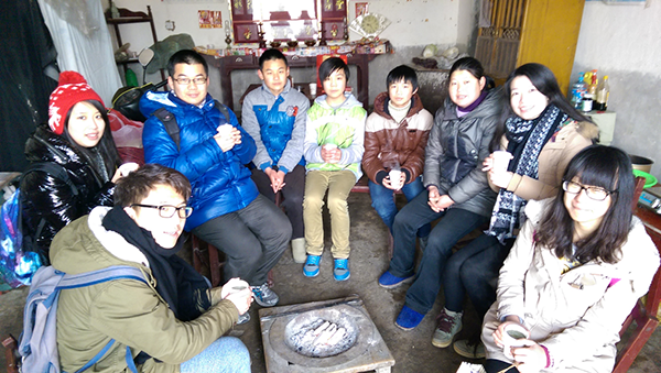 图:上财志愿者们寒假期间来到贫困地区学生家中回访