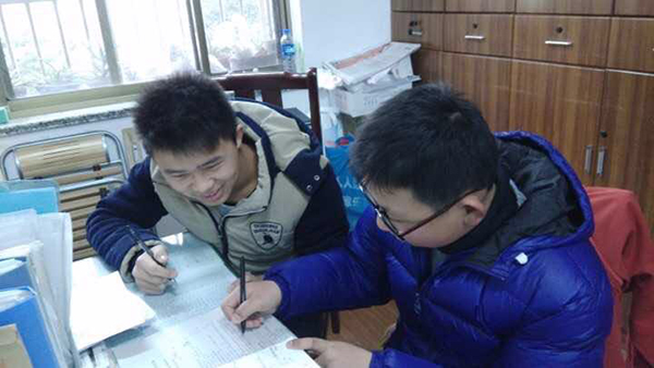 图:上财兴家志愿者寒假期间为残疾人家庭子女辅导功课