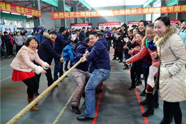 12月23日下午,上海财经大学第七届教职工健康文化节闭幕式在风雨操场举行。上海市教育工会基层工作部部长张芳,校工会常务副主席周峰,校工会副主席朱为群、郑继红,体育教学部党支部书记杜富华,校医疗健康服务中心负责人沈卫明和校工会委员,各学院、部门工会主席以及部分教职工参加了闭幕式。