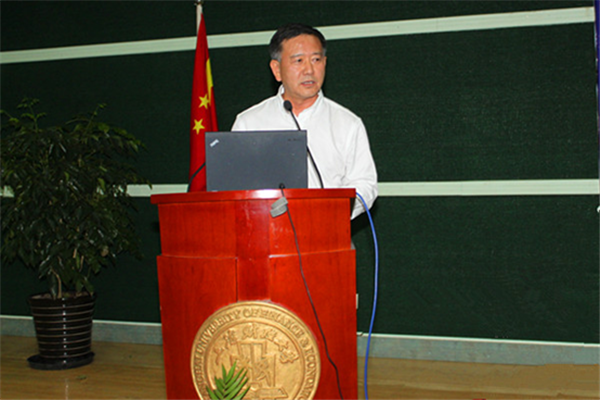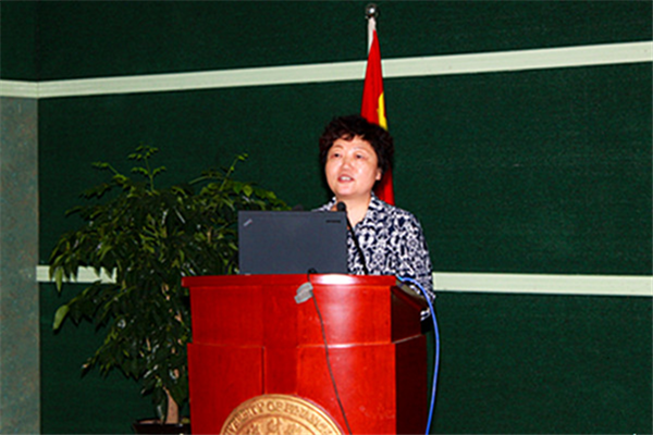 上海财经大学校长樊丽明教授致辞,樊校长首先对研究会的成立表示热烈的祝贺,同时介绍了上海财经大学在自贸区研究机构设立、承接申报课题和人才培养方面的努力和成果,并表示学校将尽可能为研究会提供支持。