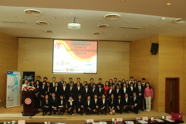 5月10日,2015年KPMG“决战24H”商业挑战赛总决赛在会计学院109报告厅顺利举行。来自全国10所高校的24名选手进行了激烈的角逐,KPMG审计部合伙人王国蓓女士,凯富利资本执行董事唐寅生先生,会计学院副院长薛爽、学院党委副书记周国良、校团委副书记沈亦骏、会计学院教师樊增、赵果等评委和嘉宾出席,140多名同学观摩了该场比赛。