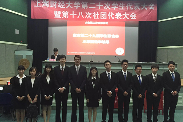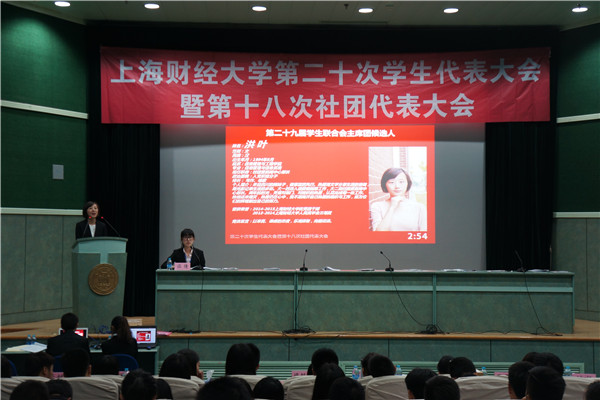 6月7日,上海财经大学第二十次学生代表大会暨第十八次社团代表大会在行政楼二楼报告厅隆重举行。来自各院系、社团的341位代表参加了会议。校长樊丽明、校党委副书记刘永章以及各职能部门负责人、学院分管领导、分团委书记,上海市学联代表、兄弟学校代表出席了此次会议。