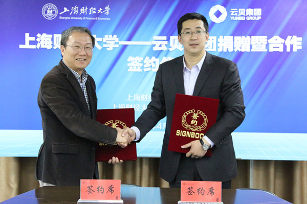 4月24日,云贝集团副总裁高猛与刘捷一行来访我校,就上海财经大学与云贝集团有限公司合作与捐赠一事进行交流并正式签约。出席仪式的还有上海财经大学副校长方华、合作发展处处长陈红梅、商学院执行院长骆玉鼎及副院长薛丽萍。