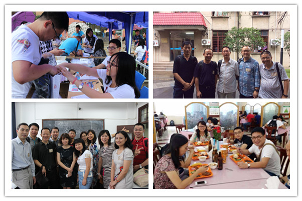 早上9点,绵绵细雨间已有校友陆续来到国定路正门口,在按院、系划分设立的签到处对应签到,并领取校友会精心准备的相关材料和为返校活动特制的纪念品。回校、回家的喜悦以及学弟学妹志愿者们在校门口的热情接待,顿时将90级校友们的思绪拉回了二十年前。随后,校友们在志愿者的引导下来到国定路第二教学楼分班级聚会,老同学见面分外激动,大家共同追忆往昔青葱岁月,相互了解各自的工作生活近况。
