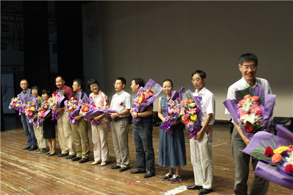 在热烈的气氛中,90级校友的老师代表逐一接受学生们上台献花,表达出90级全体校友对老师们的感恩之情。我校学生合唱团也带来精彩演出,在纪念大会上为师兄、师姐们奉献了精彩的节目。