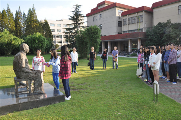 最后,同学们移步春晖园,为马寅初雕像敬献花环,表达对我校奠基人马寅初先生的缅怀之情。