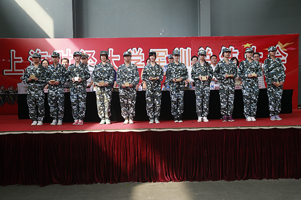 大会在雄壮的迎军旗乐曲中拉开了序幕。首先,由各学院挑选出军训优秀学生组成的队列方阵、军体拳方阵以及擒敌拳方阵分别进行了汇报表演。他们以嘹亮的口号、整齐的步伐、威严的军姿、精彩的表演博得全场掌声和赞叹,充分展现了我校2014级参训学生顽强的意志、饱满的热情、蓬勃的朝气、骄人的军训成果。 随后,军训团政委董学一宣读了获得军事技能优胜单位、军事训练优胜单位、作风纪律优胜单位、内务卫生优胜单位以及“我的军训生活成长日记”易班优秀博客奖的获奖名单,主席台上就座的领导们为获奖集体和获奖个人代表颁发了奖状和证书。 会上,军训团团长于新良作军训总结报告,并肯定了这次军训所取得的成果。91150部队训练部部长赵旭发表了讲话,他指出在本次军训工作中,全体教官严格要求,认真施教,同学们不怕吃苦,奋力拼搏,一丝不苟地完成了各项训练任务。通过军训,同学们的国防意识得到增强,综合素质得到提高,本次军训达到了预期的效果。 副校长刘兰娟作总结讲话,她首先向全体教官的辛勤付出表示衷心的感谢,向完成军训任务的同学们表示热烈的祝贺。她指出,军训对同学体能和意志都是一种考验,虽然天气情况不理想,但是同学们依然能够服从命令,听从指挥,刻苦学习,严格训练,发扬不怕苦、不怕累的精神,按计划完成了队列训练,条例学习,拳术训练,八招八法反恐防暴技能培训,消防安全教育,安全问题讲座,急救知识培训等内容,较为圆满地完成了各项训练任务。她希望同学们进一步巩固和扩大军训成果,在以后的学习和生活中,时刻以军训时的标准严格要求自己,把军训过程中练就的优良作风和铁的纪律永远保持下去,认认真真学习、踏踏实实做事,堂堂正正做人,努力把自己铸造成为德才兼备、全面发展的人才,为国家和社会多做贡献!