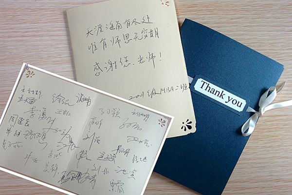 随后,平安证券副总经理刘秋明校友、易方达基金(上海)副总经理刘非校友、摩根士丹利华鑫证券研究主管王吉红校友、红枫资本创始人卓挺校友代表班级全体同学向母校和教师代表赠送了纪念品和贺卡以表达对母校的感恩之情。薛丽萍老师,兼具现任院领导和当年在校时管理团队一员的双重身份,代表学院向班级同学赠送财大学术泰斗胡寄窗教授著作《中国经济思想史》,并祝愿各位校友身体健康、事业有成、家庭幸福。