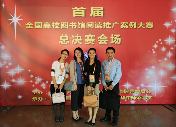 10月16日,在华中师范大学举办的决赛中,图书馆读者服务部谭丹丹代表项目组进行现场汇报,与一同晋级决赛的37个案例同场展示。在与清华大学、北京大学、上海交通大学、四川大学等全国领先的高校图书馆提交的读者组织、主题活动等类型的案例同场竞争中,我馆提交的案例,以其体现大学通识人才培育目标、作为学生课外自主阅读重要工具、强调学生原创作品与专家推荐有效整合等设计理念,系列化、可持续、重积淀的实践原则,以及类型全面、形式多样的实践成果,得到了评委们的肯定与好评。