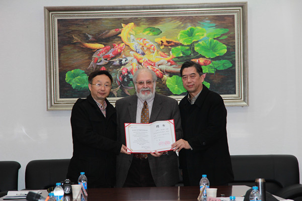 会上,校长助理郑少华向丹尼斯·西蒙教授颁发兼职教授聘书,中国公共财政研究院执行院长刘小川和公共政策与治理研究院院长胡怡建共同向西蒙教授颁发学术顾问聘书。