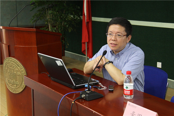 报告从13:30开始,辛周平教授首先从什么是流体力学入题,表明流体力学与人类的生活息息相关,有着极其重要的应用背景:小至日常生活,天气变化,海洋湖泊演变,航海、航天和航空,大至多相流、国防、行星运动、灾害预测及控制。他谈到,流体力学是牛顿力学的一个极其重要的分支,牛顿是所有力学的开山之祖,而欧拉早在三百年前首次将牛顿思想运用到流体力学。辛周平教授然后讲解了流体力学在应用数学中的重要性。他指出流体力学的数学理论给数学的许多分支提出了巨大的挑战,包括概率论的产生,偏微分方程早起发展,甚至是计算数学的发展都和流体力学密不可分。辛教授娓娓而谈,引经据典,详细介绍了欧拉、黎曼等数学大师在推动流体力学和应用数学的发展方面所做出的巨大贡献。