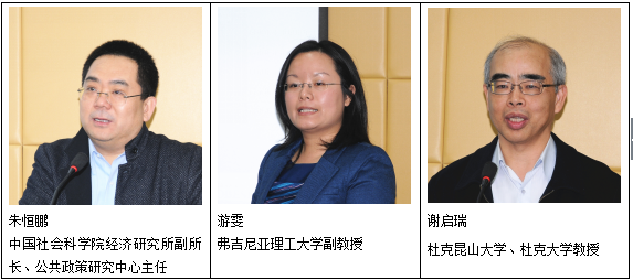 上午的研讨会分两个单元举行。第一个单元以“健康老龄化:中国的应对与国际经验”为主题,由陈杰教授主持。中国社会科学院经济研究所副所长、公共政策研究中心主任朱恒鹏研究员做了题为“中国健康产业弯道超车的可行路径”的主题演讲。他深入分析了中国医疗体制的痛点,揭示了如医患严重错配、医生合法收入不平衡、大型公立医院功能过于集中等一系列问题,并提出了“互联网医疗”这一概念,讨论了以该方法推动健康产业弯道超车的可行性与限制。美国弗吉尼亚理工大学游雯副教授在其演讲“提升生活方式的动机:一个复杂的格式塔概念”中分别从需求法则角度与食品安全角度方面对美国人中肥胖者和偏远地区的居民做了一系列的社会实验,通过空间计量的方法刻画健康食物提供的位置以及获取途径,研究了激励与行动对健康的影响,指出经济奖励的局限性。昆山杜克大学谢启瑞教授在其演讲“公共支持是否能够弥补家庭对老年人的关爱下降所引起的缺漏”中介绍和分析了台湾近几十年中老年人居住情况的变化,并指出近几十年中由于经济的发展,家庭的功能在逐步萎缩,建议政府应该在养老方面发挥出更显著的作用。