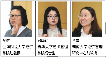 第四个单元以“生命周期研究视角下的老龄化”,由陈阗諝助教授主持。上海财经大学经济学院蔡洁助教授在其发言“人口老龄化与比较优势”中通过不同国家之间的相关数据分析,将国家分为老龄化国家与年轻国家,提出在老龄化国家中在语言能力,而年轻国家在记忆力、体力、信息接受能力具有比较优势,并进行了实证研究证实了其观点。清华大学经济管理学院博士生翁旸勤在其发言“国人如何安排时间”中对比了中美两国公民在时间安排,将时间划分为市场工作、家庭生产、家庭照料和休闲娱乐四大类,研究表明在退休阶段除了家庭照料没有明显改变之外,其他三类时间安排都有着不同的改变。湖南大学经济管理研究中心李雪助教授在其发言“文化大革命与婚姻延迟的关系”中通过研究三次人口普查的资料,对1946年至1961年出生的人进行虚拟变量检验,发现在这个时期出生的人的结婚年龄平均延迟1.2年,其中对女性的影响更为严重。