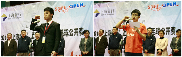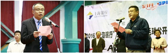 上午8点30分,2016“上海银行”上海财经大学羽毛球公开赛SUFE OPEN举行开幕式,上海财经大学体育教学部主任吕季东、上海银行副行长蒋洪分别致辞,随后运动员与裁判员郑重宣誓。上海财经大学副校长方华宣布比赛开幕,在出席领导和嘉宾的开球仪式之后,比赛正式开始。