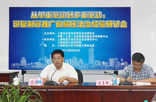 9月28日下午,逢中国(上海)自由贸易试验区设立一周年,为了总结自贸试验区设立一年来形成的法治经验,切实加强自贸区法治理论与实务研究,服务和保障中国(上海)自由贸易试验区建设,由上海市法学会自贸区法治研究会、中国(上海)自由贸易试验区协同创新中心共同主办,上海财经大学自贸区法治研究中心、上海财经大学法学院承办的,“从单重驱动到多重驱动:可复制可推广自贸区法治经验研讨会”在上海财经大学召开。来自上海交通大学、华东政法大学、上海财经大学和上海市第一中级人民法院、上海国际经济贸易仲裁委员会等多所高校和实务部门的专家就自贸区设立一年来的法治经验展开研讨。