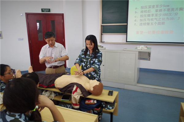 7月4日、5日,上海市红十字会的专家在武东路校区阶梯教室对我校2013级军训本科生分批开展了急救救护知识培训。本次培训内容包含气道异物梗阻救治、心肺复苏、创伤的止血与包扎等应急救护知识。