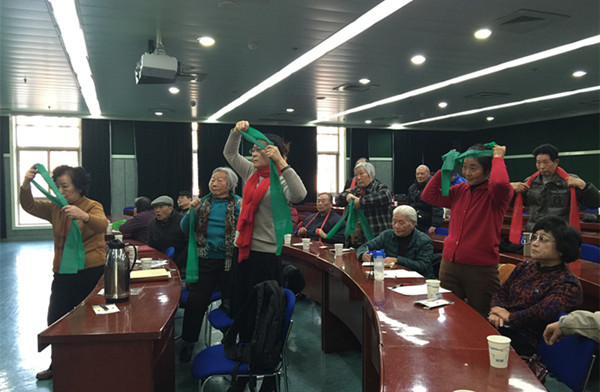 活动邀请上海体育学院运动科学学院王雪强博士做“预防跌倒 健康生活”主题讲座。随着社会人口老龄化,老年人的健康及生活质量越来越受到关注。老年人常因老化、疾病的影响而易发生跌倒,恢复过程长,给个人和家庭带来许多不便。因此预防跌倒及健康教育甚为重要,可提高老年人的生活质量。讲座中,王博士配合肌力训练带的操作使用,带领各位进行相关训练指导,有针对性的对腿部、腰部、颈椎等重点部位进行锻炼,提高肌力耐力。讲座体验性强,生动实用,大家都感到受益匪浅。