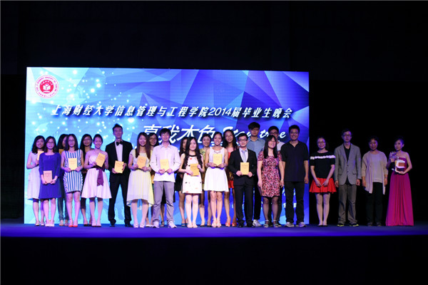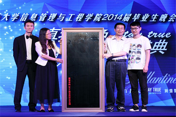 6月21日晚,我校信息管理与工程学院在武川路校区风雨操场举行“真我本色,青春盛典;STAY TRUE,STAY YOUNG”2014届毕业生晚会。副校长刘兰娟、校就业指导中心主任谭予絮、校团委书记褚华、校工会常务副主席周峰、校友代表上海中正达广投资管理有限公司总经理黄欣等嘉宾出席,学院党政领导、部分教师、学生家长以及2014届毕业生共计300余人参加了晚会。
