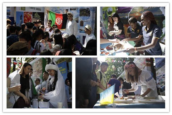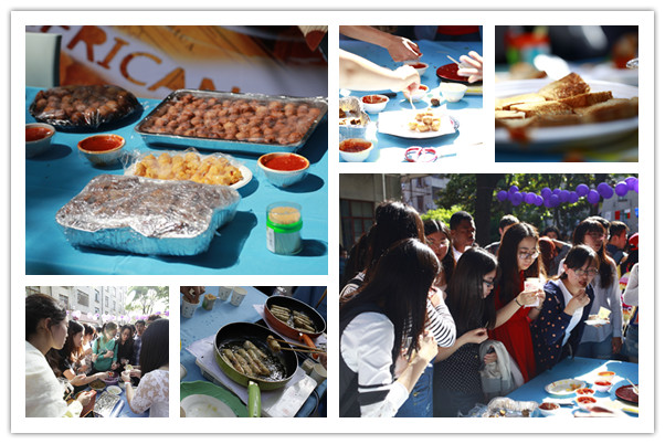 美食嘉年华上,35个展台的精美食物令人流连忘返,在春末夏初的上财校园里形成了“舌尖上的世界”。