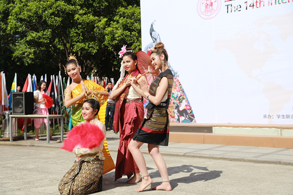 在泰国学生传统四方舞表演后,校学生会主席孙小童、第14届国际文化节留学生负责人贝德卡(印度尼西亚)分别代表中国学生、留学生致辞。在泰国学生传统四方舞表演后,校学生会主席孙小童、第14届国际文化节留学生负责人贝德卡(印度尼西亚)分别代表中国学生、留学生致辞。