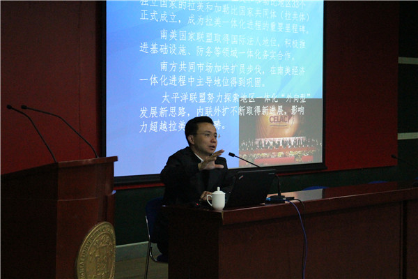 3月24日下午3点,科学•人文大讲堂在行政楼一楼报告厅举行。本次讲座以“走近新高地:拉美和中拉关系漫谈”为主题,邀请到了外交部拉美司参赞张润先生,对当前拉美地区概况,及其政治和社会形势特点进行了全方位的讲解和阐释。