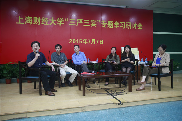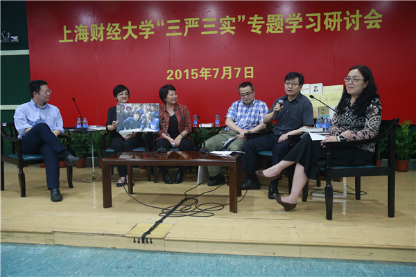 7月7日下午,学校召开“三严三实”专题学习研讨会,研讨会以沙龙对话的形式组织,邀请了包括学院书记和学校纪委副书记在内的10位嘉宾,分两组,分别围绕“严以修身,加强党性修养,坚定理想信念,把牢思想和行动的‘总开关’”和“严以律己,严守党的政治纪律和政治规矩,自觉做政治上的‘明白人’”两大主题,进行了深入的学习研讨。