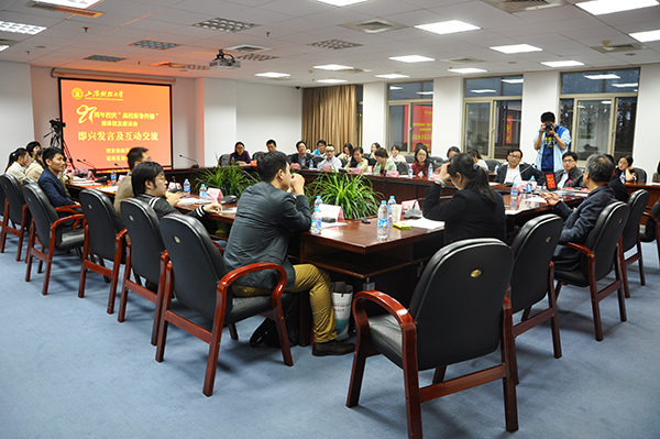 11月8日下午,在庆祝上海财经大学建校97周年之际,校党委宣传部、人文学院经济新闻学系联合举办“高校形象传播”媒体校友座谈会。来自中央电视台、中央人民广播电台、新华社、解放日报、文汇报、新民晚报、上海证券报、第一财经电视台、二十一世纪传媒等数家媒体的近20位校友参加本次座谈会。校党委副书记刘永章,党委宣传部部长章益国,副部长牛文光、孔德民,经济新闻学系主任林晖、人文学院党总支副书记杨乐出席,经济新闻学系师生代表、校学生通讯社骨干参与座谈。