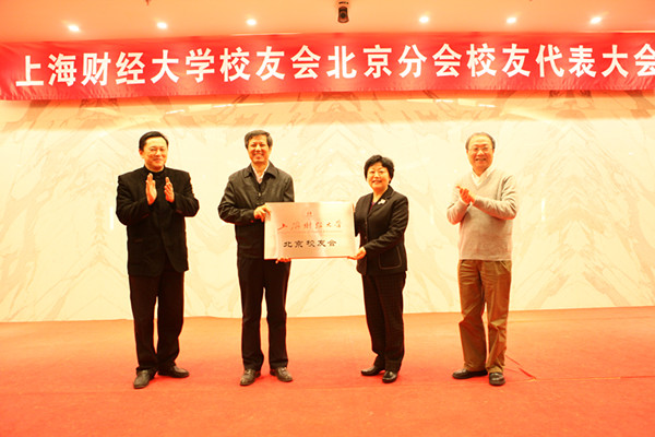 上海财经大学校友会北京分会代表大会暨第五届校友理事会换届仪式,于2015年1月10日下午在北京市中建紫竹酒店会议厅成功举办。上海财经大学校长、上海财经大学校友(总)会会长樊丽明,副校长、校友总会副会长方华,校合作发展处副处长张彦波,香港校友会会长梁健昌,广东校友会会长梁宇杰,河南校友会会长马国臣、杨钧,宁波校友会会长刘创巍,以及百余名在京校友代表出席了会议。