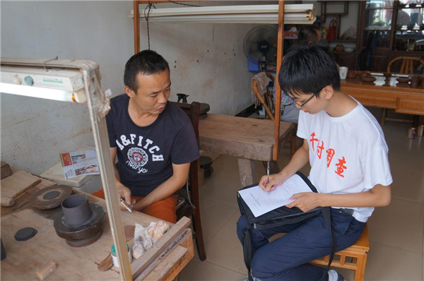在紫砂村,我走访了郭孟军、蒋彩萍、王玉芳、马彩良、周敖顺5户农户。在调查中,我有幸看到了紫砂制作的全过程,一块平淡无奇的紫砂泥在这些巧匠手里变成精美的工艺品。郭孟军一家有5口人,除去一个不满12岁的儿子,家里其他四人都从事紫砂制作,紫砂壶已成为他们家族文化的一部分,他们希望他们的技艺能够世代传承下去。马彩良是一位高级工艺师,他在网上开了一家淘宝店,生意火爆,已经成为家庭收入的重要来源。在他家的橱窗里陈列着各式各样的手工紫砂壶,无不体现出他高超精湛的技艺。周敖顺是一位62岁的老伯,家里只有老夫妻两人,做紫砂壶是老两口唯一的经济来源,也是打发闲余时光的方式。