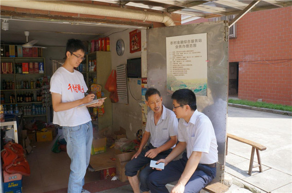 10:00 离开金融办,我来到了返乡“千村调查”的第三站——宜兴市农村商业银行,并陪同农商行主任走访和调研了南郊村农村金融综合服务站,了解了宜兴农村金融便民服务的相关情况。从2012年开始,宜兴市全面推广金融便民服务到村业务,共拓展387个便民服务点,实现农村地区行政村的全覆盖,为偏远地区农民支取各类涉农补贴、日常小额取现、余额查询提供了便利,得到了农民群众的一致好评。到2014年底金融便民服务累计办理交易33万多笔,业务金额6亿多元。