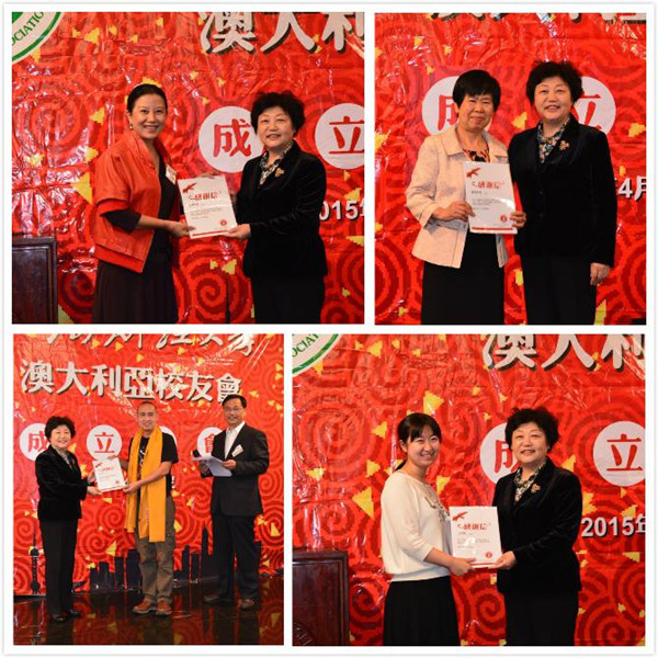 阎敏会长宣读为澳大利亚校友会成立做出重要贡献的校友名单,樊丽明校长向以上校友颁发感谢信。