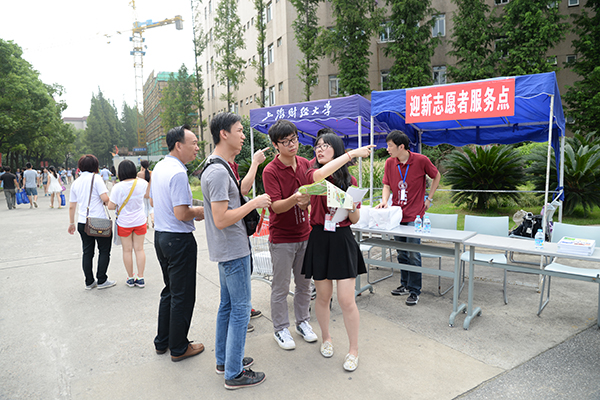 9月2号,上海财经大学新生报到日,各级学生组织根据学校统一部署安排,积极开展迎新志愿服务工作。校内共设六大志愿者服务点,并在上海火车站和周边轨道交通站点设置了志愿者服务站,广大志愿者用亲切的语言和热情的服务为2014级新生和家长们送去及时引导与帮助。