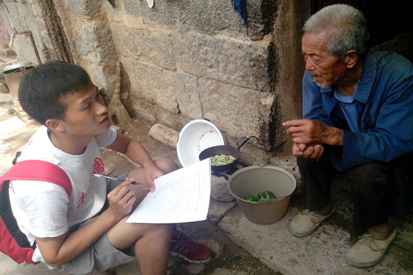 7月28日上午调查队着手开展入户调研。调查期间,调查队员白天走家串户,与农村老人拉家常、问收支,聊医疗,话喜忧;晚上回到驻地,认真总结当日情况,反映问题,交流心得,印证数据。调研队克服高温酷暑、地形复杂、农户居住地分散、经常断电、严重缺水等多重困难,经过五天紧张、辛苦的入户调研,调查队顺利完成对该县阳高乡车当村和奥治村125位老人的访谈。