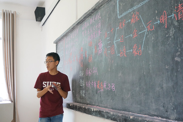 短暂休整后,实践队员立刻行动起来,张贴宣传海报,熟悉教室设施。第二天,支教活动正式开展。队员们制定了“缤纷课堂,梦想起航”支教计划,人文精神和学科知识并重,通过“课上系统、拓展性教学,课下自由、辅助性阅读”,帮助孩子们充实学科知识,提高人文素养,探索人生理想。