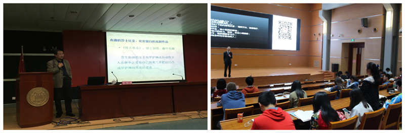 在整个校园文化节中,学术活动占据了重要板块,短短一月有余,共举办专题讲座四十余场,甲申、论谈、如师说、艺术沙龙等讲座品牌成为同学们增强学科专业性、培养开拓通识视野的良好平台。4月13日,会计学会鸿声讲坛开讲,来自复旦大学的张冲教授讲述了《有趣的莎士比亚:其人、其事、其他》,从一个不一样的视角阐释了一个有趣的莎士比亚。时值莎士比亚逝世400周年,张冲教授以纪念莎士比亚为名,用风趣的语言为我们描绘了一位不一样的莎士比亚,以及他心目中莎翁精神的精华所在,并与在座的同学一起,从语言、内容、情节等多角度赏析了莎士比亚的戏剧作品,让参与的同学更加接近真实的莎士比亚,对莎翁的作品有了更深刻的认识。