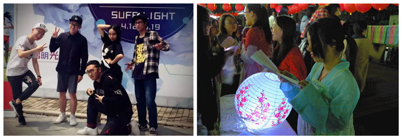 5月10日晚,游园惊梦•古风灯会”在绿叶步行街拉开序幕,由我校七个传统文化类社团联合举办,旨在校园文化节期间举办大型民俗活动,打造“传统文化之夜”。灯会活动内容丰富,有投壶、套圈、五子棋、猜灯谜、华容道等有趣的传统文化类小游戏以及各类小摊,参与者可以到茶馆品一碗茶,或是到医馆诊一诊脉,又或是到书画摊题一副词,亦或是去算卦摊算上一卦。灯会期间还穿插着精彩的表演,戏曲独唱、长笛独奏、二胡独奏等,传统文化在这一晚光芒四射。