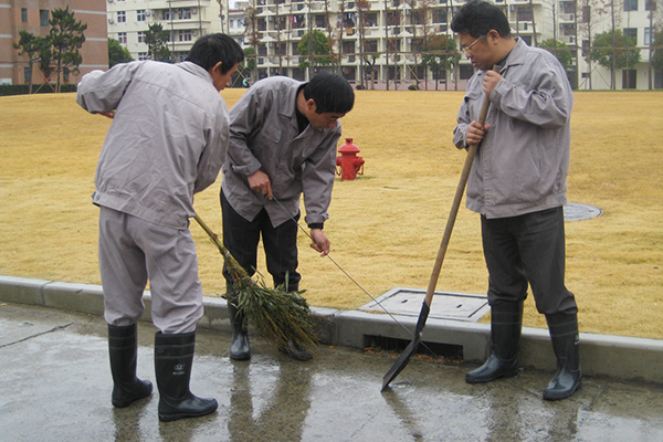 后勤中心沟路班是一个3人小班组,他们承担着三个校区的窖井、管路、化粪池的运行通畅、相关屋面的整洁和校区内横幅布置等工作。他们在日常巡查和接单报修相结合的模式下开展工作,做到五条标准:第一时间,紧急到岗;脏活累活,毫不含糊;抢险排涝,冲在最前;日常巡查,一丝不苟;热心帮助,有求必应。为能及时接待每个报修任务,班组的报修电话和班组成员手机做了绑定。师生有困难,都能及时的联系到他们。无论休息、吃饭时间或节假日他们都会及时处理每一个报修任务。工作中他们为师生从又脏又臭粪管中捞出的手机,戒指、项链、U盘等物品不计其数。他们站在师生的角度考虑,兢兢业业为全校师生员工排忧解难。