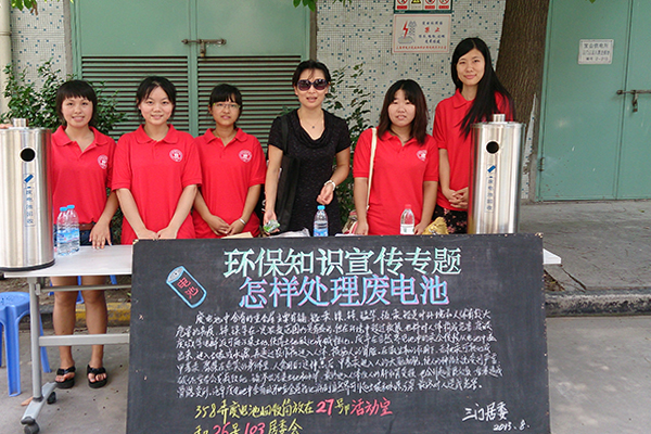 学校周边多数社区居民废旧电池处理是个亟待解决的问题。众所周知,社区是废电池产生最集中的地区之一,而废旧电池对环境的污染极其严重。针对上述问题,上海财经大学牵手社采取相应措施,结合近年来在有害垃圾分类上的实践经验,利用暑假走出校园,为我校周边近20个社区建立了一个可以健康运作的废旧电池回收机制。他们首先联系了回收机构,确立长期合作关系,之后争取社区居委会许可与协助开展活动,最后进入社区,在宣传的同时选择显眼便利位置放置回收箱并定期回收;在之后的日常活动中作为社区与回收机构间调节剂,帮助双方协调至形成稳定合作关系。废旧电池回收机制优化了环境,帮助社区居民树立了环保意识,美化了我们的家园。