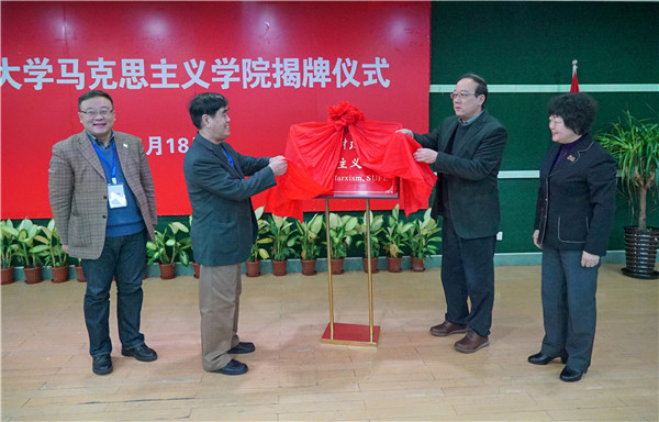 揭牌仪式由上海财经大学党委副书记陈宏主持。上海财经大学党委书记丛树海、校长樊丽明、上海市教委德育处处长李兴华、国务院马克思主义理论学科评议组成员陈占安等领导嘉宾共同为学院揭牌。上海财经大学校长助理、党委组织部长朱鸣雄宣读《上海财经大学关于成立马克思主义学院的决定》和关于学院领导的任职决定。