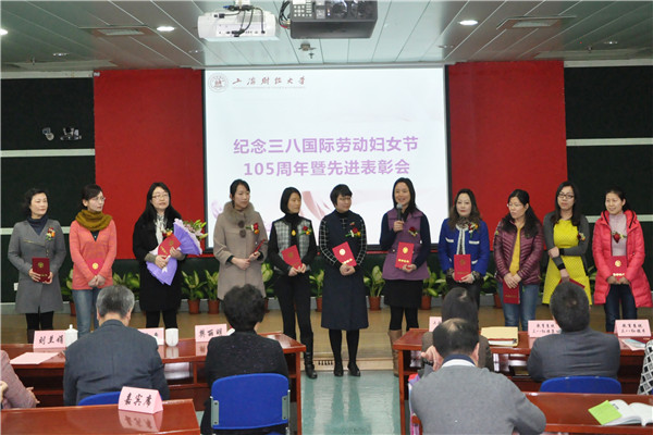 3月10日下午,上海财经大学纪念三八国际劳动妇女节105周年暨先进表彰会在行政楼一楼报告厅举行。学校党政领导樊丽明、刘永章、刘兰娟、方华、黄颖,相关院所部处负责人,受表彰的个人和集体代表,女教职工代表和十佳女大学生们等120余人齐聚一堂,共享欢乐。会议由副校长刘兰娟主持。
