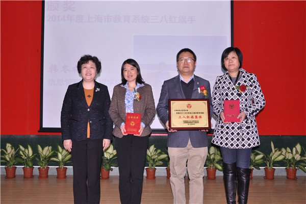颁奖中,获得表彰的个人和集体代表纷纷发表感言,分享了她们工作、学习和颁奖中,获得表彰的个人和集体代表纷纷发表感言,分享了她们工作、学习和生活的感悟,以及对家人亲友的感谢。会上先后颁发了市校两级三八红旗手、三八红旗集体等系列奖项,国际教育学院钱玲老师荣获上海市三八红旗手,信息管理与工程学院韩冬梅老师荣获教育系统三八红旗手,商学院荣获教育系统三八红旗集体。